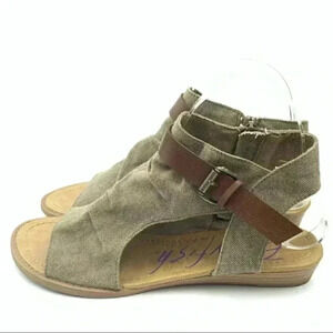Blowfish womens balla sandals size 7 army green canvas belted cutout fairycore