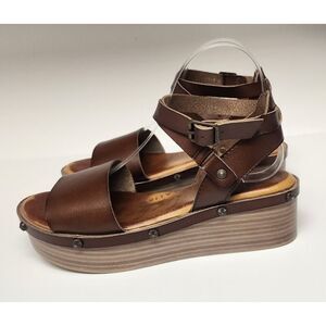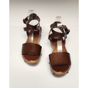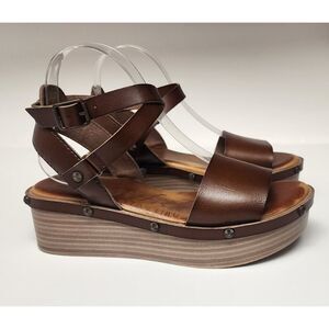 Blowfish Malibu Brown Ankle Strap Leather Wedge Sandals Size 8