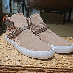 Blowfish Malibu High-Top Slip-On Sneakers. Taupe with Leopard Print Accents. Siz