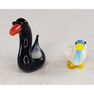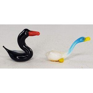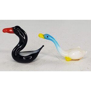 Blown Art Glass Duck Goose Bird Swan Miniature Figurine Set