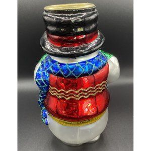Blown Glass Christmas Snowman Tealight Holder 6 1/2" Glittered Bright Colors!