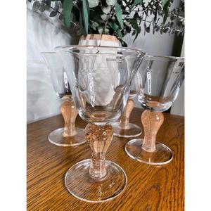 Blown Glass Goblets, Set of 4 Artland Iris Vintage Wine Glasses, Pink / Peach