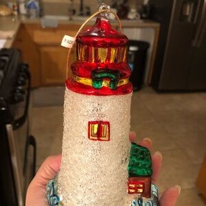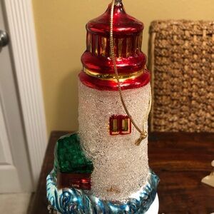 Blown Glass Large 8" Lighthouse Crashing Waves Christmas Ornaments Sugared