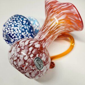 Blown Glass Orange Blue White Speckle Pitcher Vases Rainbow Glass