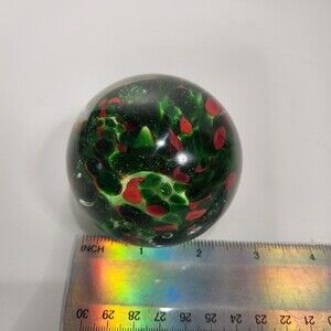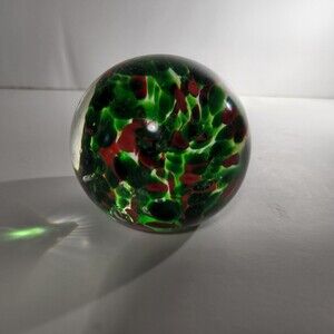 Blown Glass Paperweight Clear over Green Red Christmas Colors 3 in.