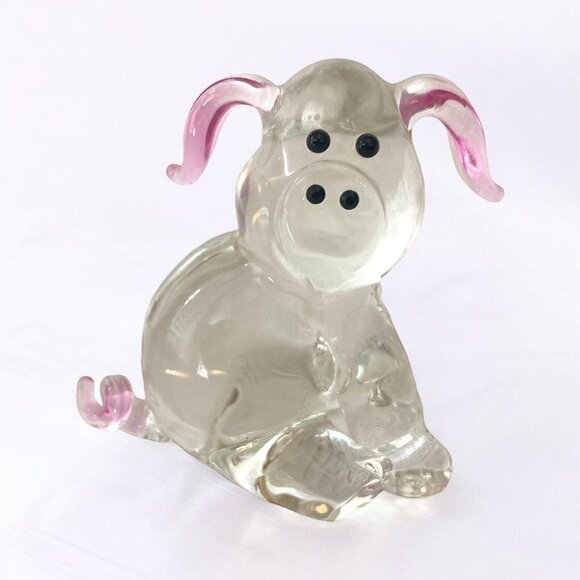 Blown Glass Pig Figurine Pink Ears 2 Inch High Adorable Animal Collectible