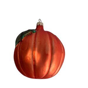 Blown Glass Smiley Pumpkin Ornament 5" x 4" Halloween & Autumn Decor