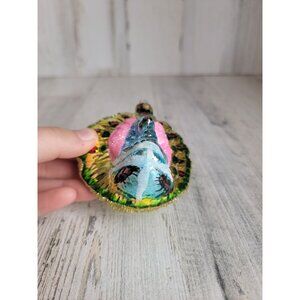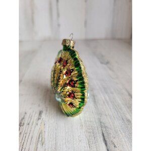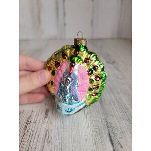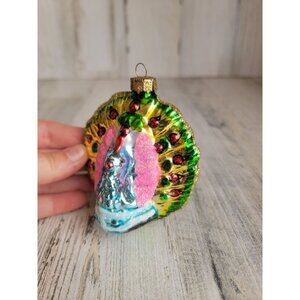 Blown glass glitter peacock bird Zoo ornament Xmas