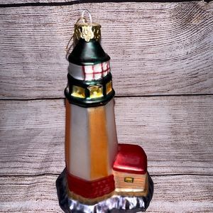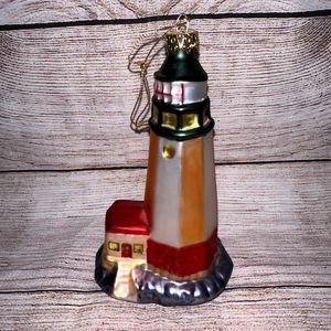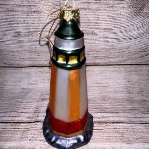 Blown Glass Shore Tower Lighthouse Christmas Ornament Nautical Sea Ornament