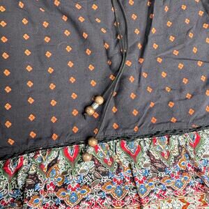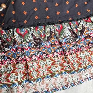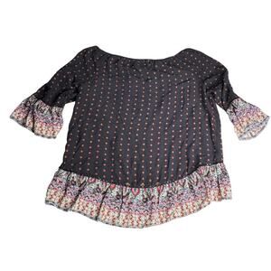 Blu Heaven Women's sz Large Multicolor Peasant Boho Blouse top Black Floral