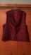 Stylish vest with a red and black brocade pattern. Perfect for formal occasions.