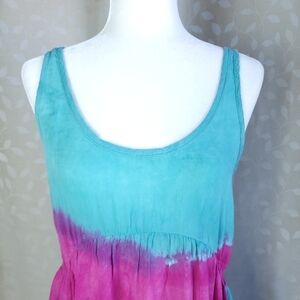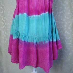 Blu Moon Revolve Tie Dye Mini Dress XS Teal Magenta Rayon Boho Festival