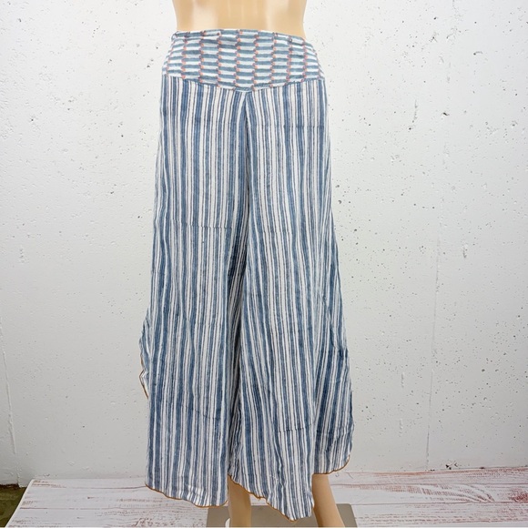 Blu Nomad size 1 XS Geo Blue Striped Wide Leg Bohemian Palazzo Pants Blunomad
