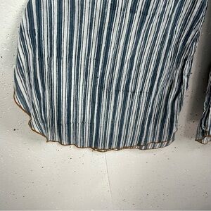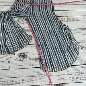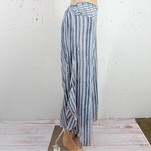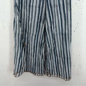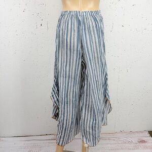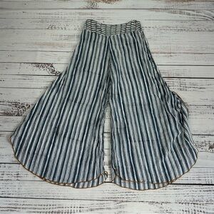 Blu Nomad size 1 XS GEO Blue Striped Wide Leg Bohemian Palazzo Pants. There are a couple of tiny runs hard to see and I do not see a material tag but should be cotton, in good preowned condition.