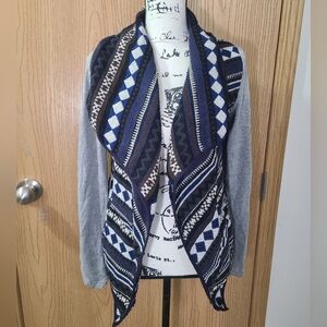 Blu Pepper Aztec Tribal Southwestern Geometric Print Woven Cardigan Jacket