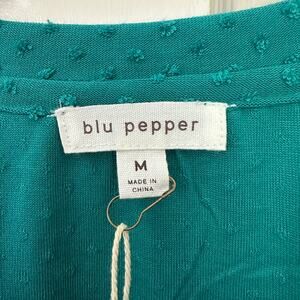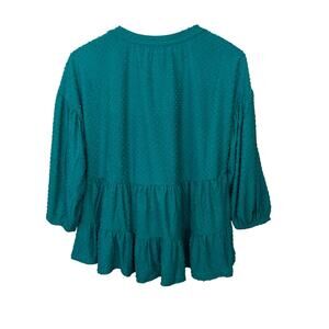 Blu Pepper Babydoll Blouse Teal Green Swiss Dot Tiered 3/4 Sleeve Medium Top New