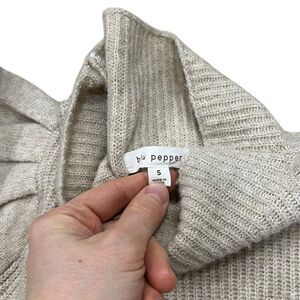 Blu Pepper Beige Mock Neck Puff Sleeve Mini Sweater Dress S