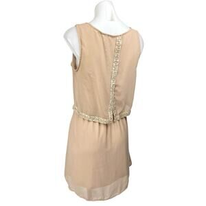 Blu Pepper Beige Tan Khaki Sleeveless Rhinestone Layered Mini Blouson Dress M