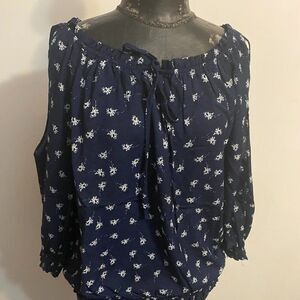 Blu Pepper Blue/White Floral cold shoulder blouse, size XXL (100% Polyester)