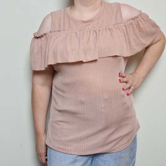 Blu Pepper Blush Pink Ruffle Detail Cold Shoulder Tank Top Size Large