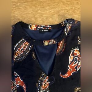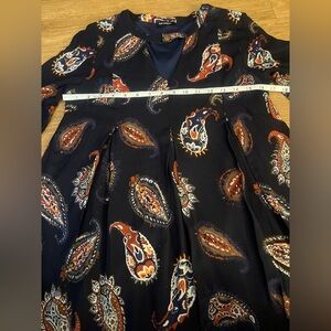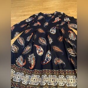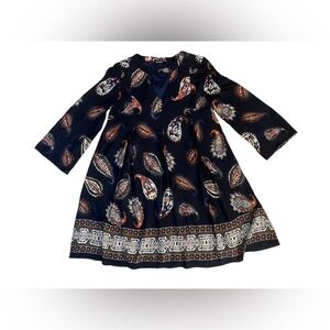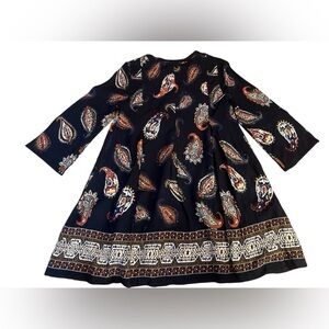 Stylish black dress with a colorful paisley pattern. Perfect for any occasion.