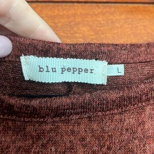 Blu Pepper Bow sweater. 3 bows down the back. Heathered dark burnt orange. Thin and lightweight. Size L. Good condition. Sooo cute!