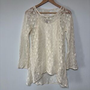 Blu Pepper Coquette Ivory Sheer Lace Blouse Size S