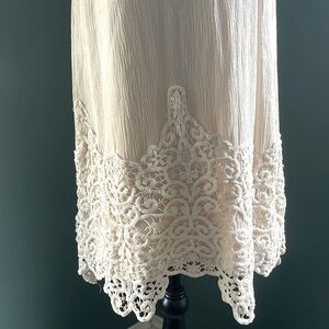 Elevate your wardrobe with this elegant cream slip dress from Blu Pepper. Featuring intricate lace detailing, it's perfect for any occasion.