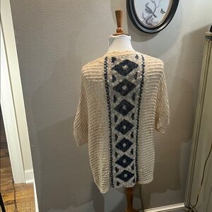 This Blu Pepper cardigan in a soft cream hue features an open-front design, perfect for layering. The textured knit pattern adds a touch of elegance, while the draped V-neckline and three-quarter sleeves offer a relaxed and stylish fit. Ideal for adding a cozy layer to any outfit. Measures 29” long in back.
