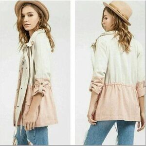Stylish utility jacket by Blu Pepper. Features a cream body with pink accents. Perfect for layering.