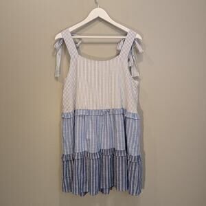 Blu Pepper Dress Color Block Stipes Tie-Shoulder Timeless Preppy Chic - Size L
