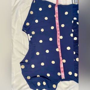 Navy & cream colored, polka dots are fun embroidered dots with small high/low hem