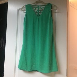 Emerald/Kelly green blu pepper dress purchased at Altar'd State. Size Small. Geometric detail on back with gold champagne beading. Very small run/pick in the front.