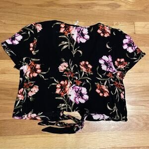 Blu Pepper Flowered Tie-Front Crop Blouse - Size S