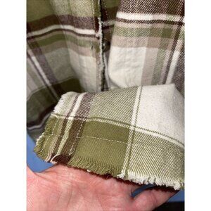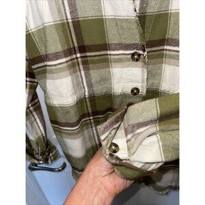 Blu Pepper Green Brown white Plaid Flannel Shacket Pockets raw hem Womens L NWOT