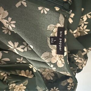 Chic green maxi dress with floral pattern. Features short sleeves and a flowing silhouette. Ideal for casual or dressy occasions.