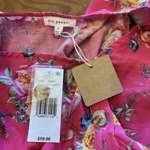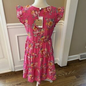 Vibrant hot pink floral summer dress with puffy sleeves and tiered ruffled bottom. Super cute. Size small. New with tags.