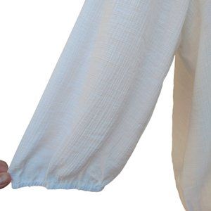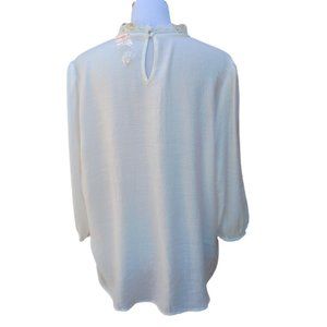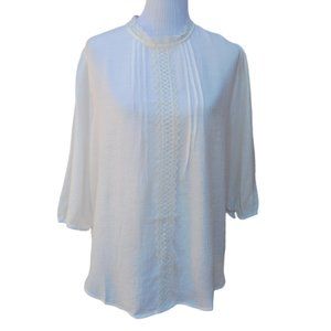 Blu Pepper Ivory Blouse High Neck 3/4 Sleeves Lace Trim Modest