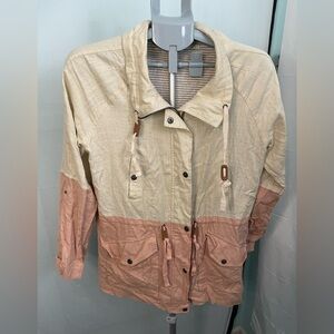 Blu Pepper Khaki and Pink Color Block Jacket Size large **missing pocket snaps**