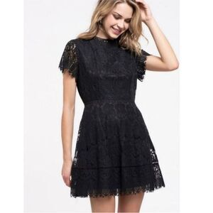Blu Pepper Lace Mockneck Mini Dress Black Size Medium