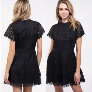 Keywords: Blu Pepper dress, black lace dress, mockneck mini, cocktail dress, party outfit, babydoll style, romantic gothic glam, semi-formal dress, wedding guest, graduation dress, women's medium, blue pepper