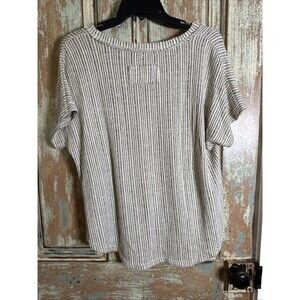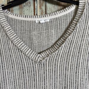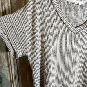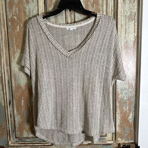 Blu Pepper Large Super Soft Gray And Cream Striped Short Sleeve Knit Top V-Neck