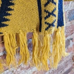 Blu Pepper Large Yellow & Blue Aztec Open Front Cardigan Sweater w/ Fringe