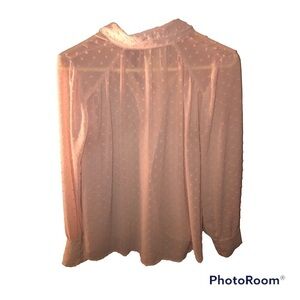 Blu Pepper Light Pink Swiss Dot Long Sleeve Bow Blouse Top