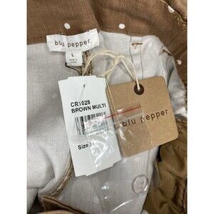 Blu Pepper Mini Skirt L Brown White Polka Dot High Waisted Belted Ruffle Waist