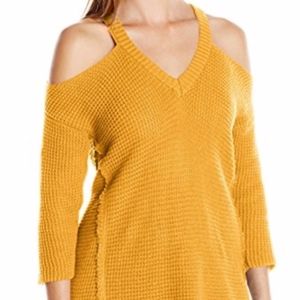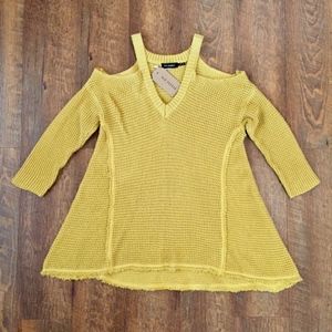 Blu Pepper Mustard Cold Shoulder Sweater Large