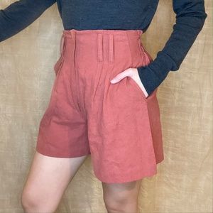 Tags: muted brick red shorts high waisted linen staple everyday shorts casual wear flattering