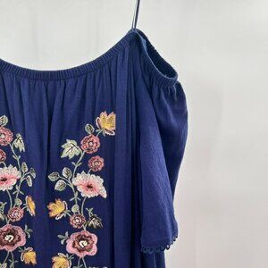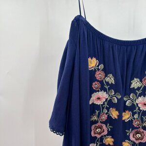 Blu Pepper Off Shoulder Short Sleeve Embroidered Flowers Shift Dress XL