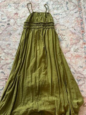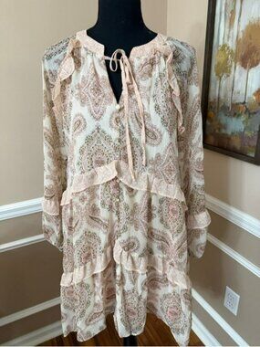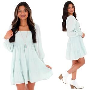 Blu Pepper Pastel Mint Green Smocked Bust Balloon Sleeve Tiered Dress Medium
