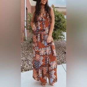 🆕Blu Pepper Patchwork Criss Cross Back Maxi Sundress S🆕